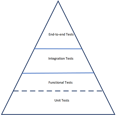 나중에 개발주기를 진행하면서 더 많은 구성 요소가 통합될수록 테스트는 취약하고 느리고 신뢰할 수 없게 된다. 이러한 이유로, 최상의 테스트 전략은 다른 유형의 테스트보다 훨씬 더 많은 단위 테스트를 만드는 것이다. 위 그림은 바람직한 테스트 피라미드를 보여준다.