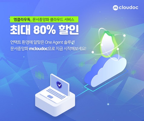 [아이티데일리] 문서중앙화 클라우드 서비스 전문기업 엠클라우독(대표 유상열)은 코로나19로 인해 비대면 업무 환경의 필요성이 높아짐에 따라 중소기업을 대상으로 문서중앙화 클라우드 서비스를 최대 80% 할인하는 프로모션을 진행한다고 27일 밝혔다.