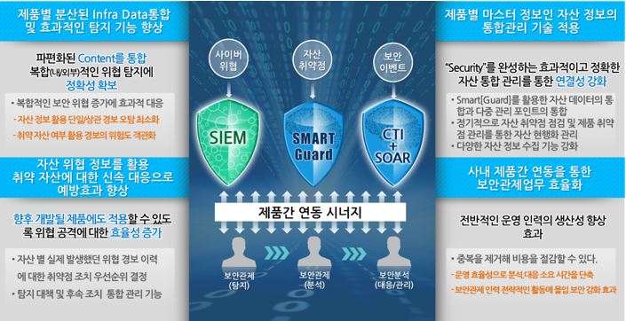 현재 운영하고 있는 IT 인프라에서 가장 중요한 자산이 무엇인지를 파악하고, 관련 자산에 대한 통합 데이터를 구축, 각 자산에 대한 취약점을 현행화해 이를 보안관제시스템과 연동 및 적용한다면 복잡 다양한 인프라 환경 속 분산된 자산을 노리는 여러 보안 위협에 대한 대응력을 한 단계 높일 수 있을 것이다.