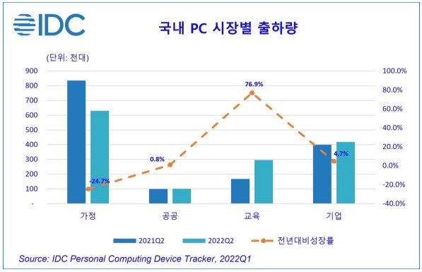 IDC에 따르면 특히 가정 부문의 PC 출하량이 감소하며 전체 PC 시장 하락에 영향을 준 것으로 나타났다. 디지털 격차 해소를 위한 교육청의 스마트 기기 지원과 기업의 지속적인 PC 투자에도 불구하고, 글로벌 전역에서 중국의 락다운으로 인한 공급 지연과 대내외적 경기 불확실성이 증가하며 시장 하락을 견인한 것으로 분석됐다.