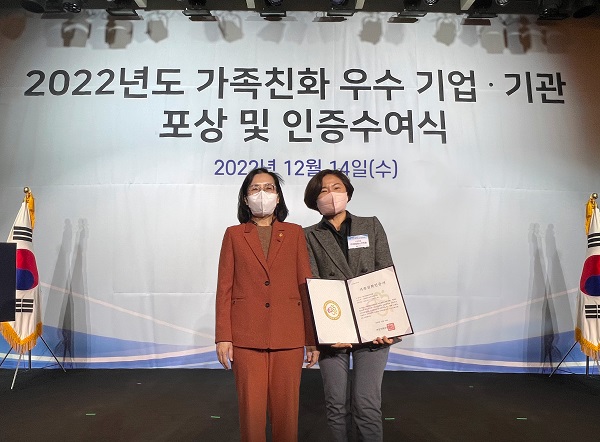 또한 같은 날 영림원소프트랩은 여성가족부가 주관하는 ‘2022 가족친화 인증기업’에도 선정됐다. 여성가족부가 2008년부터 시행해온 가족친화인증은 근로자의 일과 가정생활의 조화를 위해 자녀 출산 및 양육지원, 유연근무제, 직장문화 조성 등 가족친화제도를 모범적으로 운영하는 기업과 공공기관을 대상으로 인증을 부여하는 제도다.