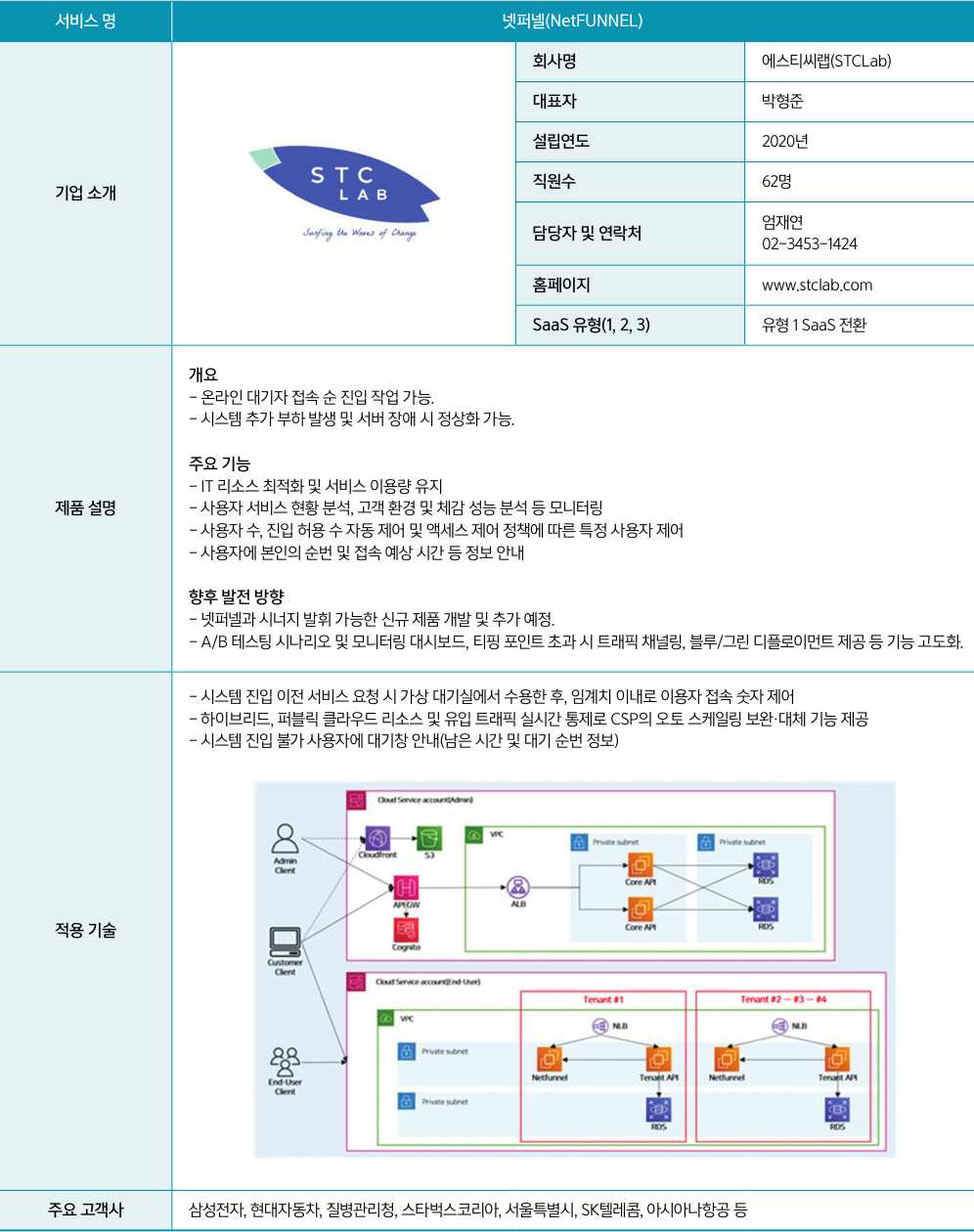 [아이티데일리] 에스티씨랩(대표 박형준)은 2020년 설립된 트래픽 관리 솔루션 전문기업이다. 최종 사용자가 서비스 이용 현황과 애플리케이션에 대한 모니터링 및 제어를 통해 중단 없는 안정적으로 디지털 서비스를 이용할 수 있도록 서비스를 제공한다. 에스티씨랩은 국내 가상 대기실 솔루션인 ‘넷퍼넬(NetFUNNEL)’과 실시간 데이터 모니터링 솔루션 ‘앱인사이터(AppInsightor)’를 보유하고 있다.
