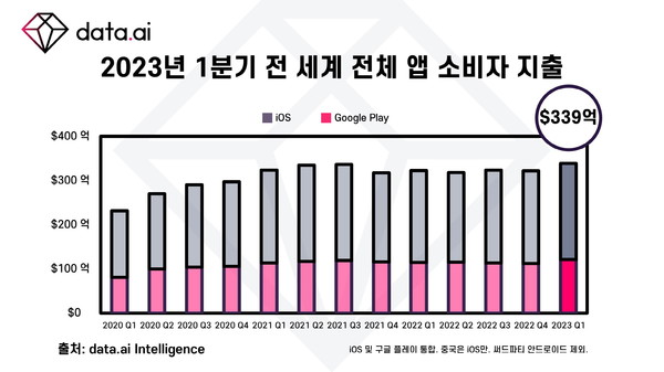데이터닷에이아이의 결산 보고서에 따르면 올해 1분기 대한민국 모바일 시장은 경기 침체로부터 벗어난 것으로 보인다. 비게임과 게임 부문 모두 지난 분기 대비 소비자 지출과 다운로드가 동시에 성장했다. 이 중 게임 앱의 경우 이번 분기에 약 15.5억 달러(2조 원)의 소비자 지출을 달성해 분기별 소비자 지출에서 전례 없는 신기록을 기록했다. 이는 전년 대비 15%, 지난 4분기 대비 18% 상승한 결과다.