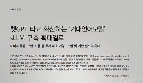 [아이티데일리] 최근 국내 모든 산업군에서 혁신의 아이콘으로 부상한 기술이 있다. 바로 거대언어모델(LLM, Large Language Model)이다. 올해 초 챗GPT(Chat Generative Pre-trained Transformer)가 국내에 실험 버전으로 공개되면서 국내 기업들은 LLM에 주목하기 시작했다. 2016년 알파고와 이세돌 9단과의 대전 이후 사그라들었던 기업들이 인공지능(AI)에 관심을 보였던 것과 같은 양상이다.