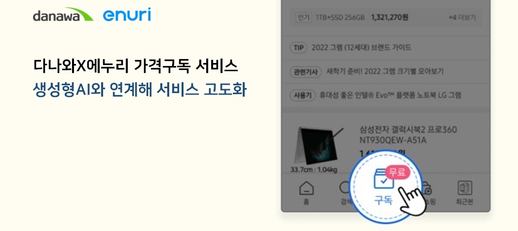 예를 들어, 다나와와 에누리의 가격구독 서비스를 통해 방문하는 소비자는 △원하는 상품의 최저가와 가격추이를 기본으로 △비슷한 상품 및 가격대 △가장 많이 팔린 상품 △개인 맞춤형 상품추천 △댓글 및 리뷰 요약 등 개인맞춤형 편의기능을 고도화해 나갈 예정이다.