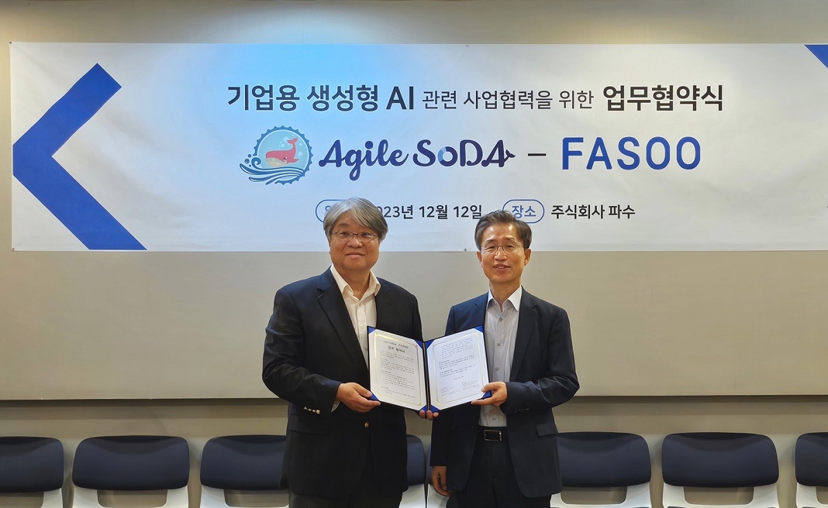 [아이티데일리] 주식회사 파수(대표 조규곤)는 애자일소다(대표 최대우)와 지난 12일 서울 마포구 파수 본사에서 ‘기업용 생성형AI 관련 사업협력을 위한 업무협약(MOU)’을 체결, 기업용 AI 시장 선점에 나선다고 밝혔다.
