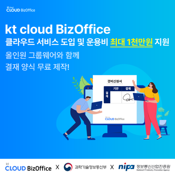 중소기업일 경우 이번 지원사업의 수요기업으로 신청 및 선정 시 클라우드 서비스 도입 비용을 최대 1000만원까지(자부담금 20%) 정부지원금 바우처 형식으로 지원받아 비즈오피스를 이용할 수 있다.