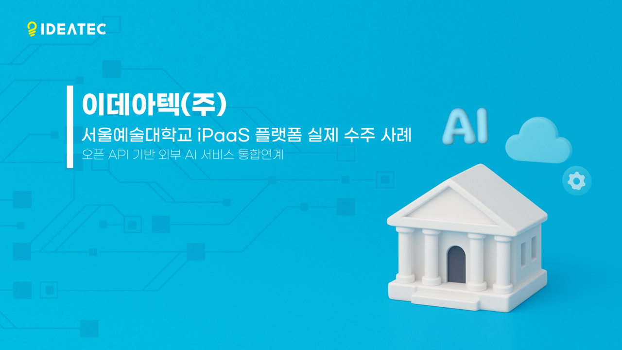 [아이티데일리] 노코드 API 기반 iPaaS(Integration Platform as a Service) 통합연계 플랫폼 전문기업 이데아텍은 서울예술대학교의 오픈 API 연계 사업을 수주했다고 17일 밝혔다. 회사는 최근 대학을 대상으로 AI 서비스와의 오픈 API 기반 연계 사업을 본격 확대하고 있다.