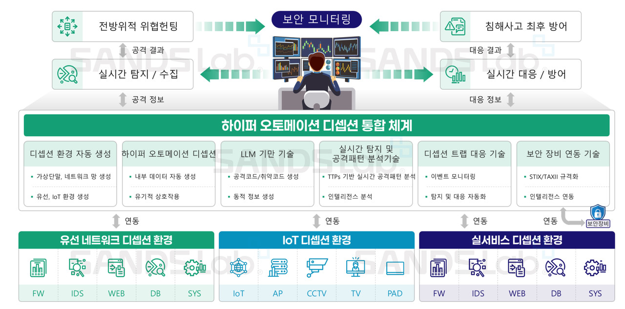 과제를 담당한 샌즈랩 허수만 총괄책임자는 “기존 보안 체계는 공격 뒤에 사후 대응에 초점을 맞춘 탓에 침투 흔적이 늦게 발견돼 대규모 피해로 이어지는 상황을 막기 어렵다”며 “AI 기반 디셉션 기술은 공격자를 유인하고 실시간으로 침투를 감지해 선제 대응하는 새로운 보안 패러다임”이라고 설명했다.
