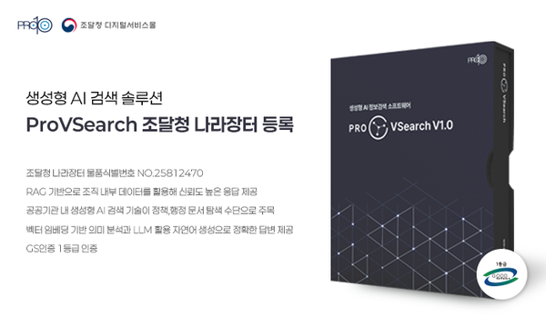 [아이티데일리] 인공지능(AI) 및 마이크로소프트(Microsoft) 솔루션 구축 전문 기업 프로텐(대표 박재완)이 생성형 AI 검색 솔루션 ‘프로브이서치 v1.0(ProVSearch v1.0)’을 조달청 나라장터 디지털서비스몰에 등록했다고 17일 밝혔다.