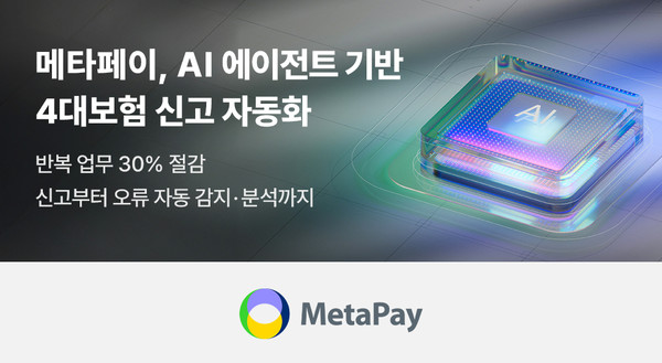 메타페이는 AI 챗봇과 로봇 프로세스 자동화(RPA) 기능을 통해 4대보험 신고를 자동화했다. 특히 AI 에이전트를 활용해 신고 오류를 탐지하고 원인을 분석해 업무 담당자에게 리포트를 제공하는 기능도 갖췄다. 고지 내역과 실제 신고 결과 간 불일치를 비교·분석하고, 관련 보고서를 생성해 전달한다.