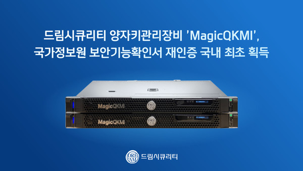 [아이티데일리] 인증 보안 전문기업 드림시큐리티(대표 범진규, 오석주)는 자사가 직접 개발한 양자암호통신 양자키관리장비 ‘매직QKMI(MagicQKMI)’가 국가정보원으로부터 보안기능확인서 재인증을 국내 최초로 획득했다고 31일 밝혔다.