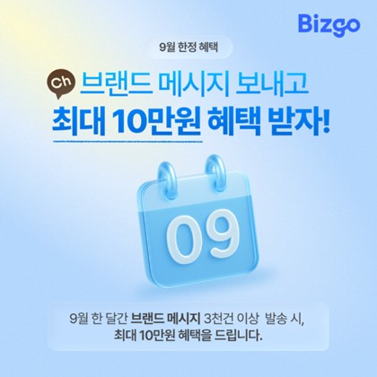 [아이티데일리] 인포뱅크(대표 박태형)는 자사 기업 채널 커뮤니케이션 플랫폼 ‘비즈고(Bizgo)’에서 9월 한 달 동안 카카오 브랜드 메시지 발송 혜택 프로모션을 진행한다고 5일 밝혔다.