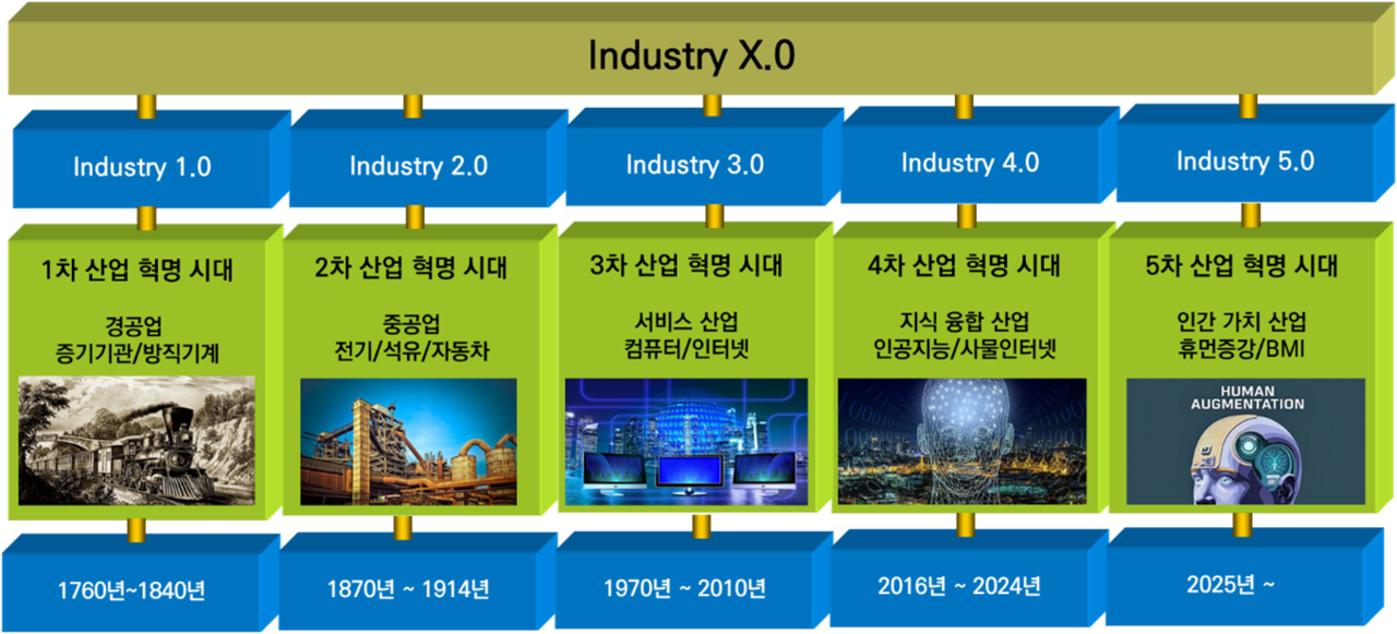 그러면 5차 산업 혁명은 과연 어떤 시대일까? 5차 산업혁명은 기술이 인간을 지배하는 시대가 아니라, 기술이 인간을 보완하고 공존하는 시대다. 다시 말해, 인간 중심의 기술 혁명, 인간-기술 공존 혁명이다. 그래서 5차 산업혁명은 인간 가치 산업으로 불린다.