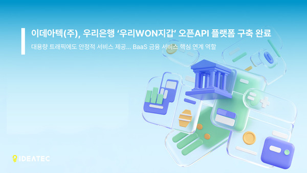 [아이티데일리] 이데아텍(대표이사 이정수, 어윤호)은 우리은행의 전자지갑 서비스인 ‘우리WON지갑’ 전면 개편 프로젝트에 자사의 노코드 서비스형 통합 플랫폼(iPaaS) 기반 API 게이트웨이(API Gateway) 및 오픈API 플랫폼을 구축하고, 대규모 트래픽 환경에서도 안정적인 서비스 운영을 지원하고 있다고 28일 밝혔다.