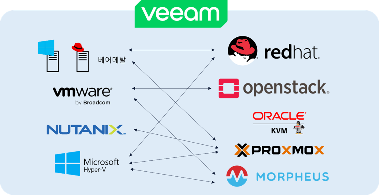 또한 다양한 프라이빗 클라우드 환경은 물론 VM웨어(VMware)뿐만 아니라 및 KVM 기반인 레드햇(Red hat)/오픈스택(Openstack)/모피어스(Morpheus) 환경에서도 백업데이터 복원검증 구현이 가능하다.