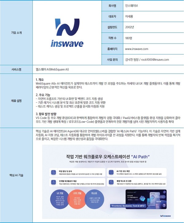 향후 인스웨이브는 웹 표준 기술력 위에 AI 혁신을 결합해, 엔터프라이즈 개발 환경의 생산성과 품질을 동시에 향상시키는 AX 선도 기업으로 자리매김한다는 계획이다. 기술 중심의 내실 성장 전략을 기반으로, 기업 고객의 AI 전환을 실질적으로 완성하는 ‘현장형 AI 플랫폼’을 지속 확장하고 있다.