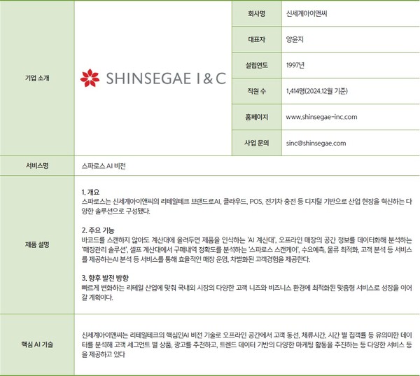 신세계아이앤씨의 핵심 사업 브랜드는 ‘스파로스(Spharos)’다. 리테일 산업에 특화된 AI·클라우드·POS·멤버십 플랫폼을 포괄한다. 스파로스는 ‘AI 비전’을 중심으로 오프라인 매장 운영의 효율성을 높이고, 데이터 기반 고객 경험을 확장하는 데 초점을 맞추고 있다. ‘스파로스 AI 비전’은 신세계아이앤씨가 자체 개발한 비전 AI 기술에 무인매장 운영을 통해 축적된 수천만 건의 영상 데이터를 결합해 고도화한 기술이다. GPU 없이 CPU 기반으로 동작해 비용 효율성과 보안성을 확보했으며, 이를 다양한 리테일 환경에 적용할 수 있다.
