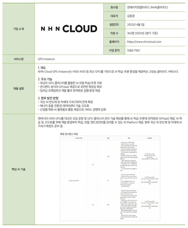 정부가 추진하는 1조 4,600억 원 규모의 GPU 확보·구축·운용지원 사업에서 최다 구축사로도 선정됐다. 이 사업에서 NHN클라우드는 전체 GPU 물량 1만 3,136장 중 가장 많은 규모인 7,656장(전체 물량의 58%)을 확보해 1조 원 이상의 물량을 공급하게 됐다. 이는 국가 AI데이터센터 운영을 기점으로 GPUaaS 영역으로 사업 범위를 확장해 온 과정의 결과로 분석된다.
