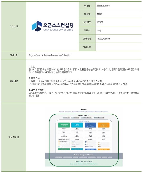 오픈소스컨설팅은 AI 시대를 맞아 오픈소스 기반의 AI 인프라와 협업 플랫폼을 통해 고객사의 AI 전환(AX)을 지원하는 것을 핵심 사업으로 추진한다. 이와 관련해 회사는 클라우드 인프라와 워크 매니지먼트 영역에서 기술력을 바탕으로 고객 맞춤형 솔루션을 제공하고 있다.