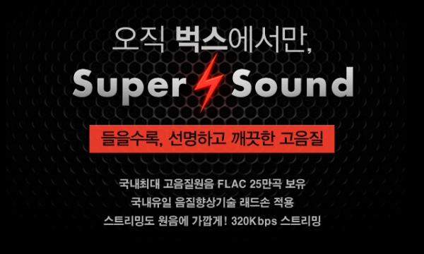 한편, 벅스는 슈퍼사운드 캠페인을 기념, 웹에서 FLAC 음원을 다운로드 받거나 앱을 통해 카카오톡 친구에게 슈퍼사운드를 알리는 고객 중 추첨을 통해 30만원 상당의 ‘소니 MDR-1RMK2’ 헤드폰 등 경품을 증정할 계획이다.