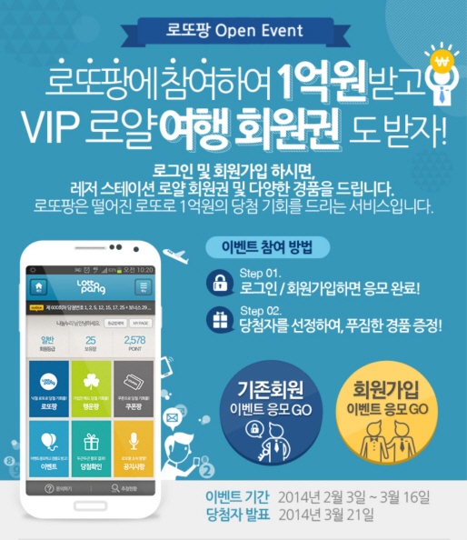 크라우드 소싱(대중참여, CS) IT기업 나눔누리 코리아는 리워드 어플 '로또팡' 출시를 기념해 오는 3월 16일까지 경품 이벤트를 실시한다고 밝혔다.