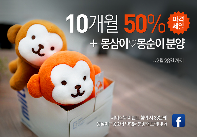 이와 함께, 몽키3뮤직은 10개월간 음악 감상 및 다운로드 서비스를 50% 할인 판매하는 프로모션을 실시, 오는 28일까지 상품을 구매한 고객 중 300명을 추첨해 ‘몽삼이’·‘몽순이’ 캐릭터 인형도 증정할 예정이라고 밝혔다.