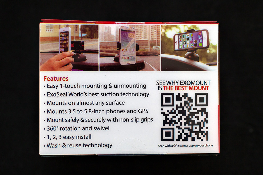 제조사가 밝히고 있는 엑소마운트 터치의 장점은 스마트폰의 착탈이 간편하고 ExoSeal이라는 가장 강력한 기술을 사용하여 떨어지지 않는다고 합니다. 이런 강력한 흡착력으로 대부분의 표면에 부착이 가능하다고 합네요. 3.5인치부터 5.8인치 스마트폰에 사용을 할 수 있다고 합니다. (6인치 이상 제품이 따로 존재합니다)