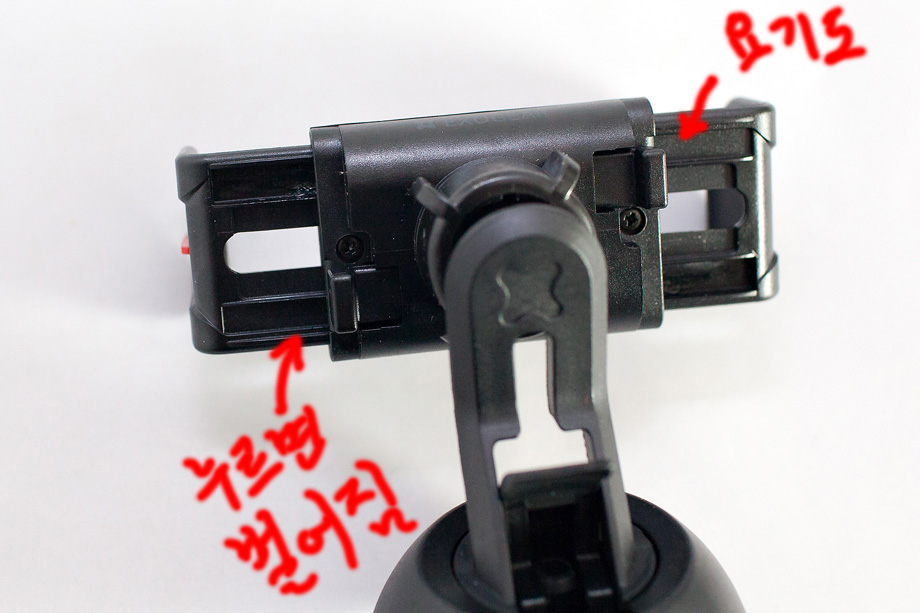 나중에 분리를 할때는 후면의 버튼을 안쪽으로 눌러주면 스마트폰이 분리가 되지요. 안쪽으로 조여지는 힘도 적당히 좋아서 충격을 받아도 스마트폰이 떨어지거나 하는 일이 없어서 좋더군요. 전에 사용하던 제품은 스마트폰이 자꾸 흘러내렸었다는 슬픈 이야기.