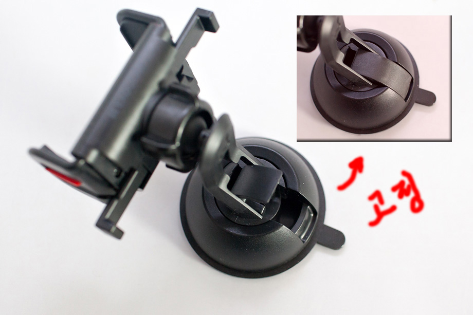 원하시는 부위에 붙인 다음에 상단의 레버를 내려주시면 단단하게 고정 됩니다. 접착력이 얼마나 좋은지 대부분의 평면에 붙을 수 있다고 합니다. 기존의 제품들은 유리 같은 미끄러운 부위에만 붙었었죠.