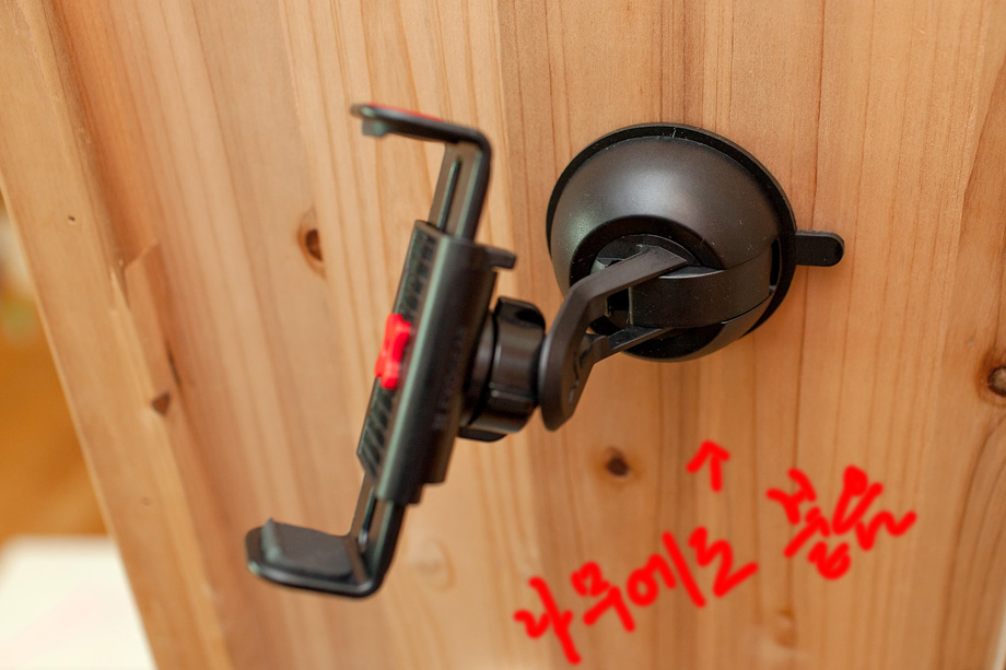 나무판에도 착 하고 달라 붙는 제품이니 차량에도 잘 붙겠죠? 대부분의 차량용 거치대들은 접착력 강한 양면테이프로 많이들 붙게 되어 있는데 말이죠. 그런 제품들은 한번 붙여 놓으면 뗀 다음에 재 사용을 못할뿐만 아니라 차도 지저분해 지니 좋지 않습니다.