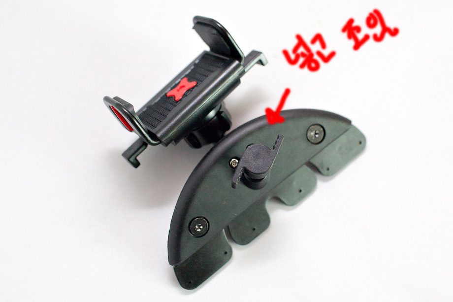 시디 플레이어에 하단의 마운트 부분을 넣은다음에 제가 사진에 표시한 부분을 돌려주면 시디에 넣은 곳이 양쪽으로 벌어져서 시디 플레이어에 단단하게 고정되는 방식 입니다.
