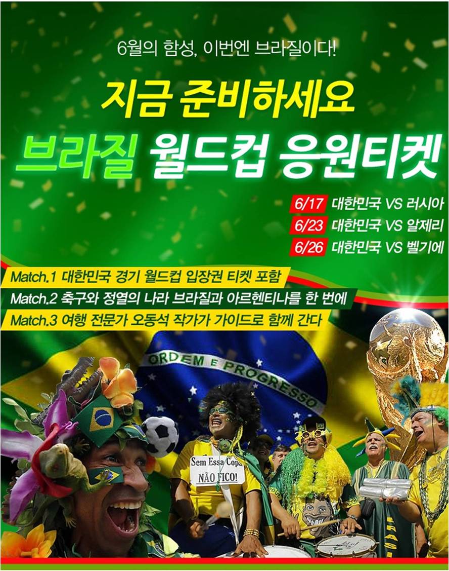[아이티데일리] CJ오쇼핑이 운영하는 소셜커머스 CJ오클락은 여행상품 ‘브라질 월드컵 응원가자!’를 16일까지 판매한다고 발표했다.