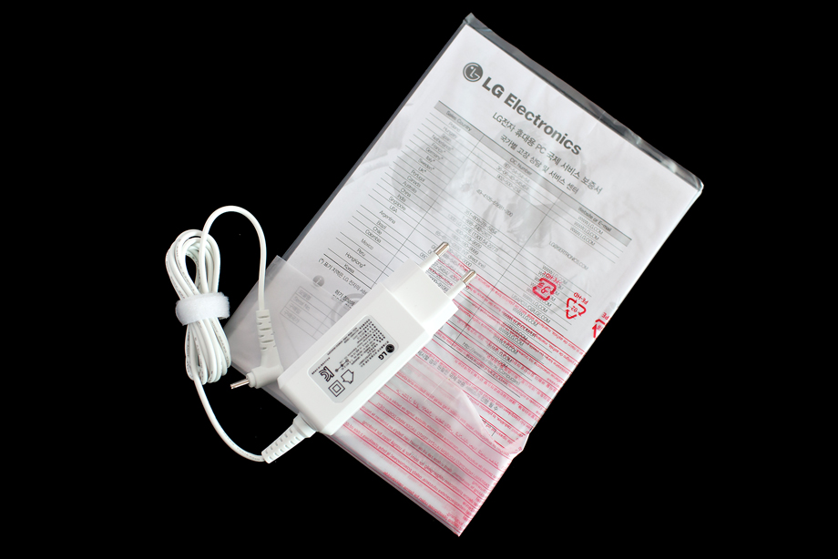 노트북PC 외에 구성품은 매우 간단합니다. 어댑터와 설명서 끝! 경량화를 이뤘다고 해야할까요? 어댑터 역시 상당히 가벼운 무게로 되어 있어서 들고 다니기 편리하게 되어 있습니다.