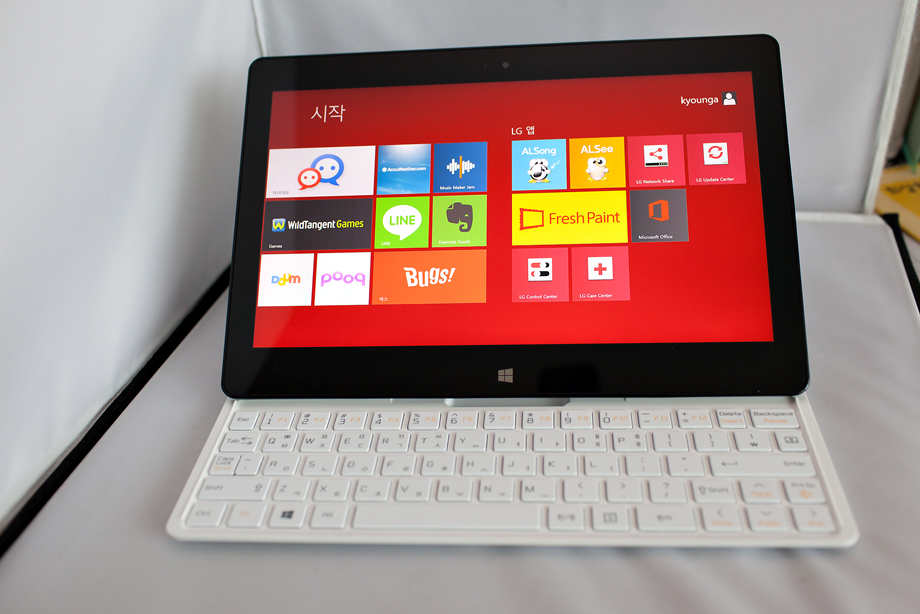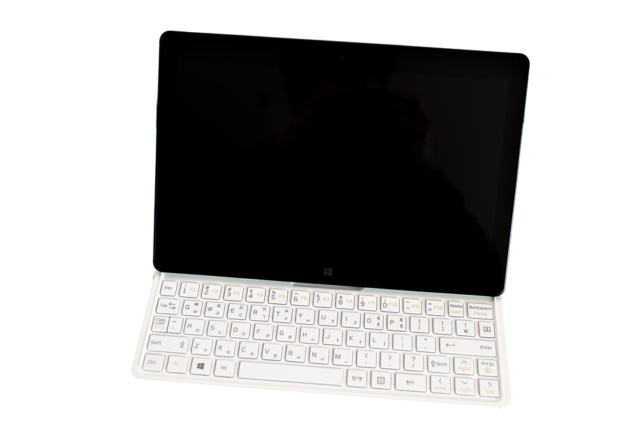 인텔의 와이다이를 지원하고 있어서 TV가 와이다이를 지원한다면 무선으로 화면을 연결해서 바로 쓸 수 있는 것도 장점이구요. 무엇보다 제품의 가장 큰 장점은 태블릿PC모드에서 노트북PC모드로 변환이 된다는 것이겠죠? 키보드가 달려 있는데도 참 가벼워서 좋은 LG 탭북입니다.