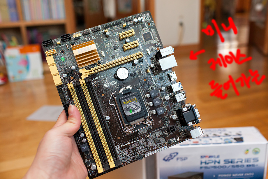 이런 작은 케이스를 쓰실때는 보드가 M-ATX형인지 꼭 확인을 하셔야 합니다. 다행이도 이번에 구매를 한 ASUS B85M 제품은 M-ATX형이네요. 그리고 이번 조립에서는 그래픽카드를 넣지 않아서 별로 상관 없긴 하지만 고급형 그래픽 카드의 경우 작은 케이스에 들어가지 않는 경우도 있습니다.