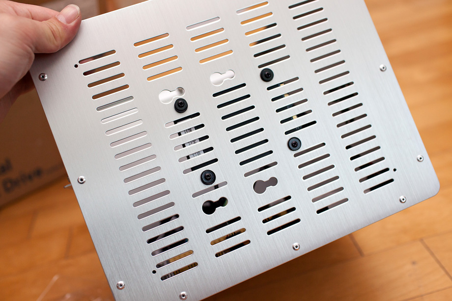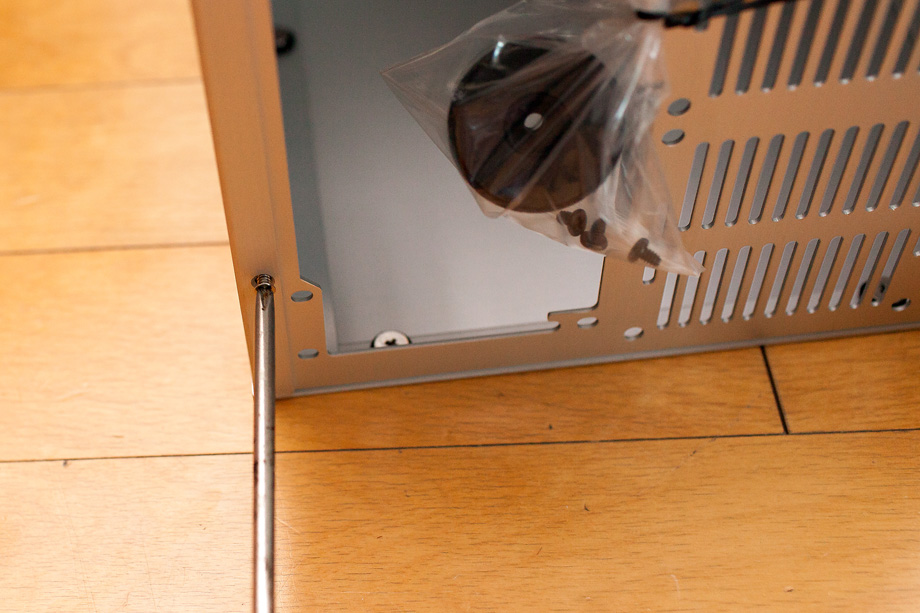 보드를 케이스에 결합하기 전에 가장 먼저 할일은 케이스의 후면에 보드에 포함되어 있는 판넬(?)을 꼽아주는 일 입니다. 보드 마다 본인의 모양에 맞는 것을 제공하기 때문에 저렇게 케이스에 끼워 주면 되지요. 이후에 보드를 얹어 놓고 나사로 조이시면 됩니다. 조금은 까다로운 작업이라 할 수 있겠네요.