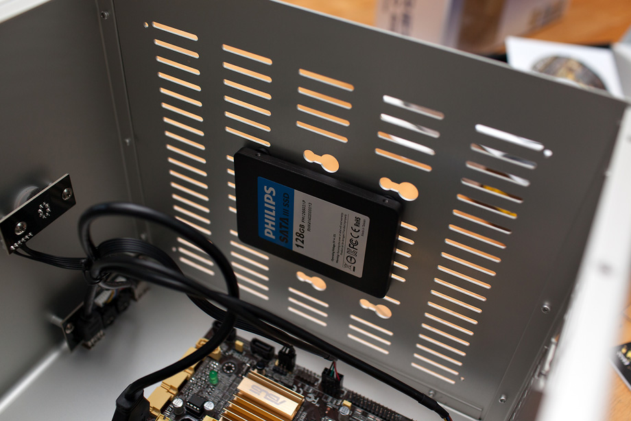 SDD 제조사에서 브라켓을 제공을 했다면 HDD 베이에 그냥 넣으면 되는데 브라켓을 안 준관계로 어떻게 달아야 하나 고민하고 있는데 브라보텍 V4 케이스를 보니 바닥에 달 수 있게 해 놨다 그런 설명이 있네요. 안에 들어있는 고무와 함께 달아 버리면 됩니다.