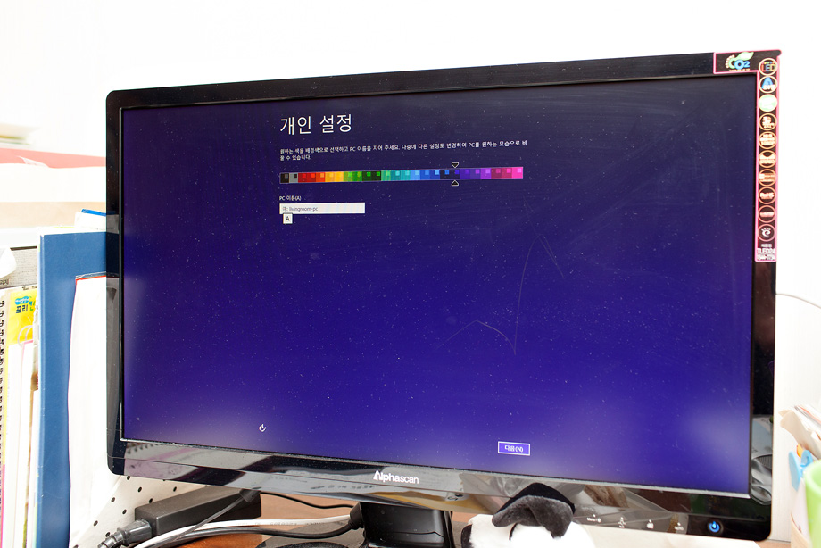 전원 스위치를 넣는 순간... 이순간이 가장 떨리는 순간 입니다. 아무 이상없이 화면이 안들어오는 경우도 있거든요.