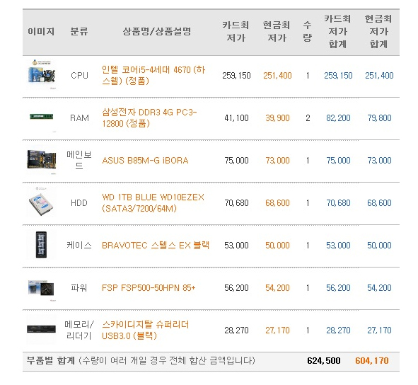 견적내기를 이용하시면 친구들에게 이렇게 메일로 보내기가 쉽기 때문에 편리합니다. 제가 처음에 이렇게 제안을 해서 보냈더니 의뢰인께서 메모리 리더기는 필요 없고 케이스는 BRAVOTEC V4를 쓰시겠다고 해서 그러시라했습니다. 사실 미니타워는 조립하기가 꽤 까다롭기 때문에 조립해주는 입장에서는 영 내키지 않는 그런 일 입니다.