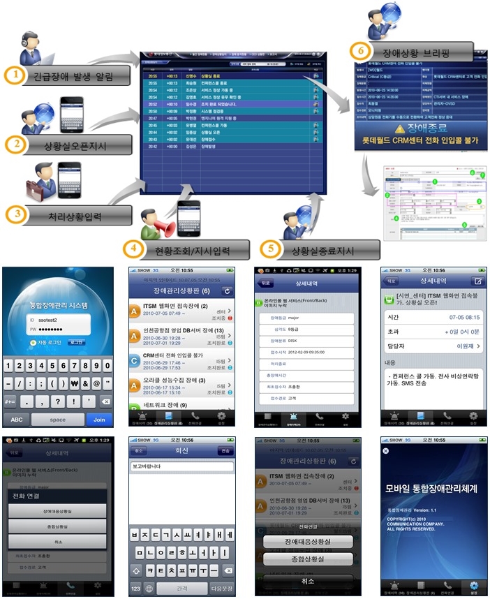 모바일 디비이스에서 직접 서비스를 요청해 처리하는 등 일련의 작업을 수행할 수 있으며, 이미 구축된 ITSM 프로세스 절차에 따른 연동도 가능하다. 종합 상황실과 실시간 장애상황을 공유해 장애처리 보고 및 장애분석내역 조회도 가능하다.