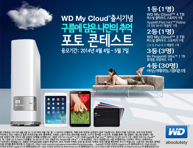 퍼스널 클라우드 솔루션, WD 마이 클라우드 출시 기념 페이스북 이벤트