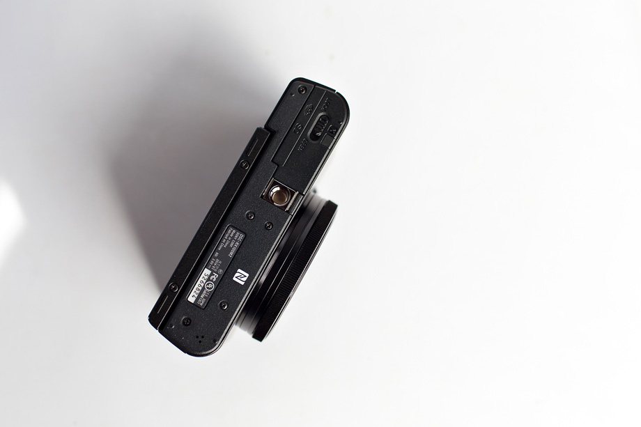 하단에는 삼각대 마운트가 가능한 홈이 있고 배터리와 SD카드가 들어가는 부분이 있습니다. 하단에 NFC를 익식하는 곳이 표시가 되어 있군요. 최근의 소니 제품들은 모두 NFC를 지원해서 상당히 편리하더군요.