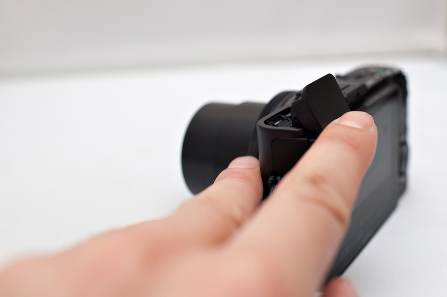 전원을 켜면 렌즈가 앞으로 나오는 방식으로 설계가 되어 있네요. 내장형 팝업 플레쉬까지 꺼내면 위와 같은 모양이 됩니다.