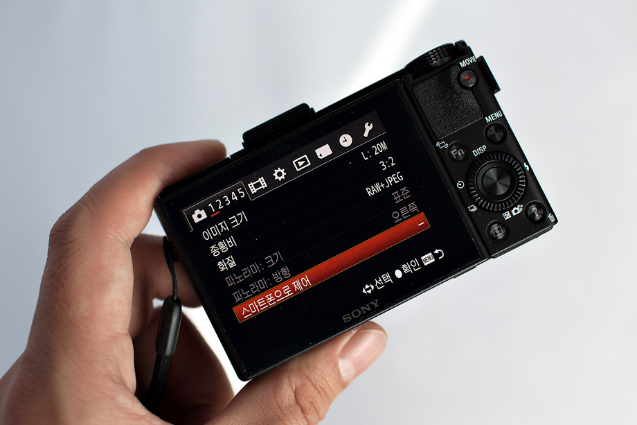 조작계의 경우 소니 카메라를 사용해보신 분들이라면 어렵지 않게 사용하실 수 있습니다. 저는 작년에 NEX-5R을 상당히 오래 가지고 놀았던지라 쉽게 적응할 수 있었습니다. 우상단의 모드다이얼과 우측의 조작버튼과 어우러져 빠른조작이 가능하게 설계가 되어 있습니다.