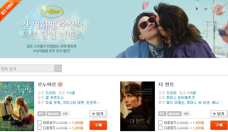 이밖에도 곰TV는 ‘홀리 모터스’(제65회 경쟁부문 후보), ‘러스트 앤 본’(제65회 경쟁후문 후보), ‘르누아르’, ‘송곳니’, ‘하트비트’, ‘어네스트와 셀레스틴’, ‘영앤뷰티플’ 등 작품성을 인정받은 다양한 영화를 제공한다고 덧붙였다.