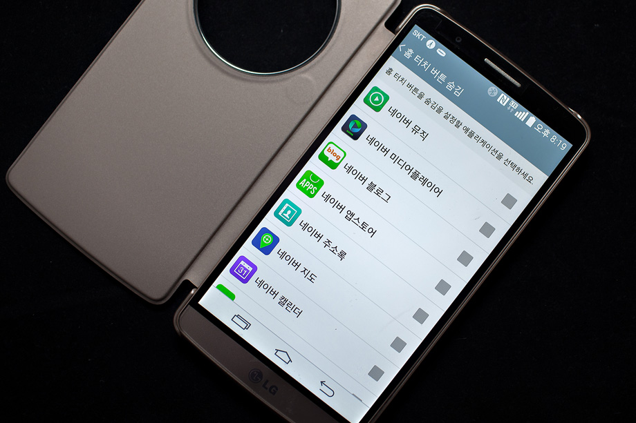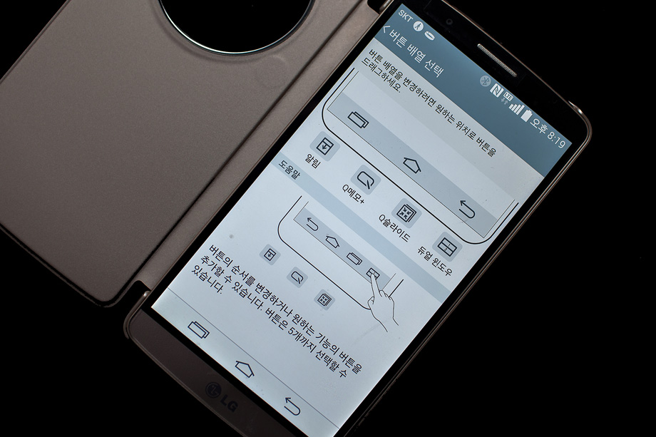 근데 후면 재질이 LG G3 후면 케이스 같은 재질이 아니라서 조금 실망 스럽습니다. 후면을 그리 강조하더니 결국 퀵서클 케이스는 후면이 왜 이 따우...