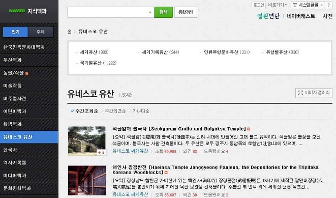 이번에 구축된 정보는 160개국의 세계유산 981건, 93개국의 인류무형문화유산 327건, 99개국의 세계기록유산 241건 등 총 1,550여 건으로, 네이버 지식백과에서 유네스코에 등재된 전 세계 유산들의 현황 및 전문적인 정보를 확인할 수 있게 됐다.