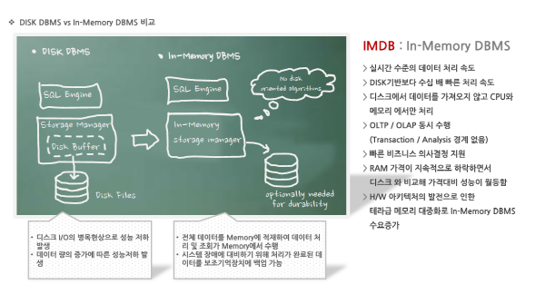 그 뿐 아니라, 대학생들의 인터넷 수강 신청도, 소비자의 온라인 복권 구매도 우리의 일상이 된 지 오래다. 인터넷의 대중화는 비즈니스 패러다임의 변화를 가지고 왔고, 이를 가능케 한 기술적 진보의 핵심에는 인메모리 DBMS가 자리 잡고 있다.