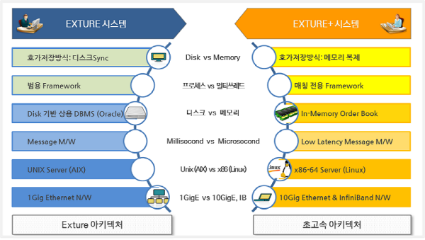 그 결과, KRX는 매매체결 처리 성능의 285배가 개선됐으며, 초당 처리 건수(9000건→2만건)와 일일처리량(8000만건 à 1억 6000만건) 측면에서 2배 이상의 성능 개선 효과를 거둘 수 있었다.